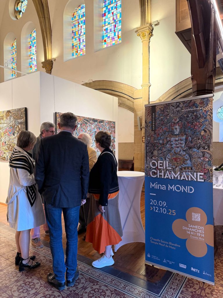 Jeudi 18 septembre 2025. Vernissage et inauguration de l’exposition « Oeil Chamane – Mina Mond » à la Chapelle Sainte-Blandine et au Temple Neuf à Metz en présence de l’artiste et de nombreux invités et personnalités.